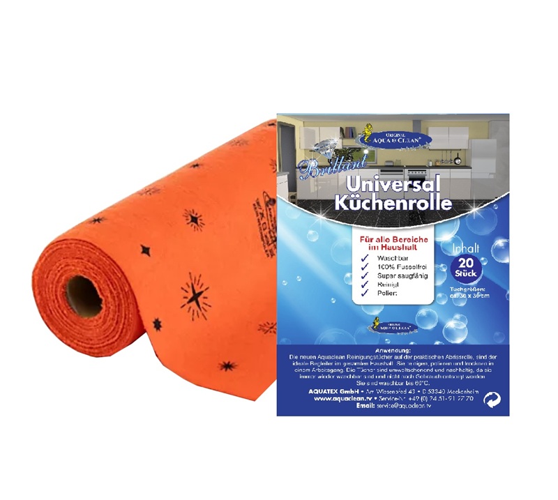 Die neuen Aqua Clean Reinigungstücher auf der praktischen Abrissrolle, sind der ideale Begleiter im gesamten Haushalt. Sie reinigen, polieren und trocknen inm einem Arbeitsgang. Die Tücher sind umweltschonend und nachhaltig, da sie immer wieder waschbar sind und nicht nach Gebrauch entsorgt werden. Sie sind waschbar bis 60°C.