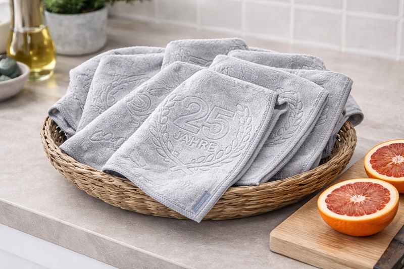 Produktinformationen "AQUA CLEAN Kristall-Geschirrtücher – 6-teiliges Set mit Prägemotiv 25 Jahre Jubiläums Druck"
