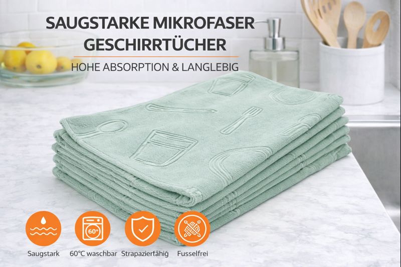 Sie nehmen Feuchtigkeit schnell auf und hinterlassen keine Fusseln – für hygienische Sauberkeit in Küche und Haushalt.