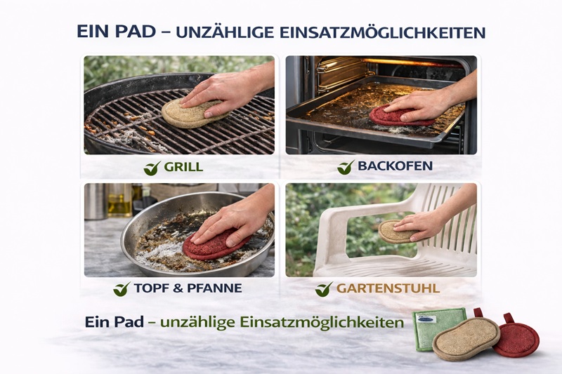 Die Pads lösen eingebrannte Rückstände, Fett und hartnäckigen Schmutz gründlich und effizient.
